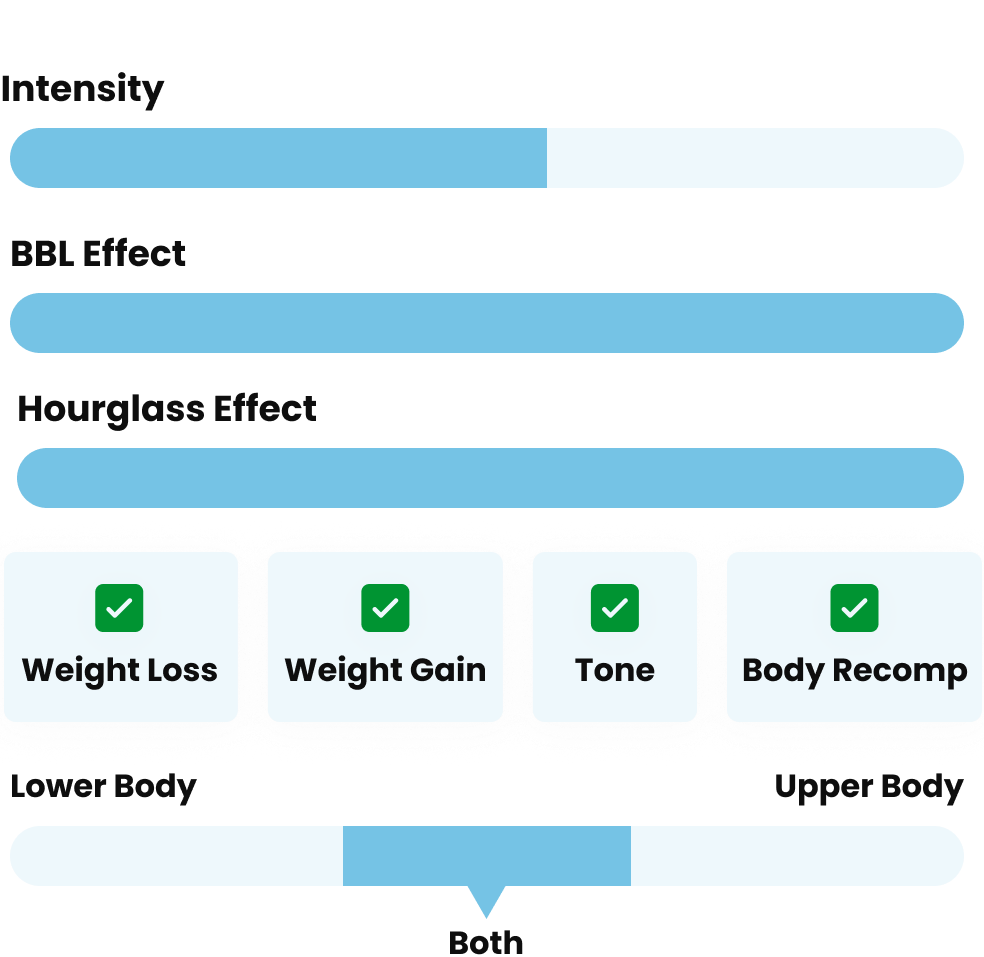 Get that hourglass body!3 Days a Week$88.00 one time5 Days a Week$88.00 one time2 Plans LeftBENEFITS: